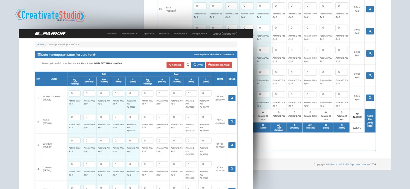 - Melakukan input pendapatan per juru parkir yang mana menyesuaikan dengan kertas yang di setorkan oleh pengawas.